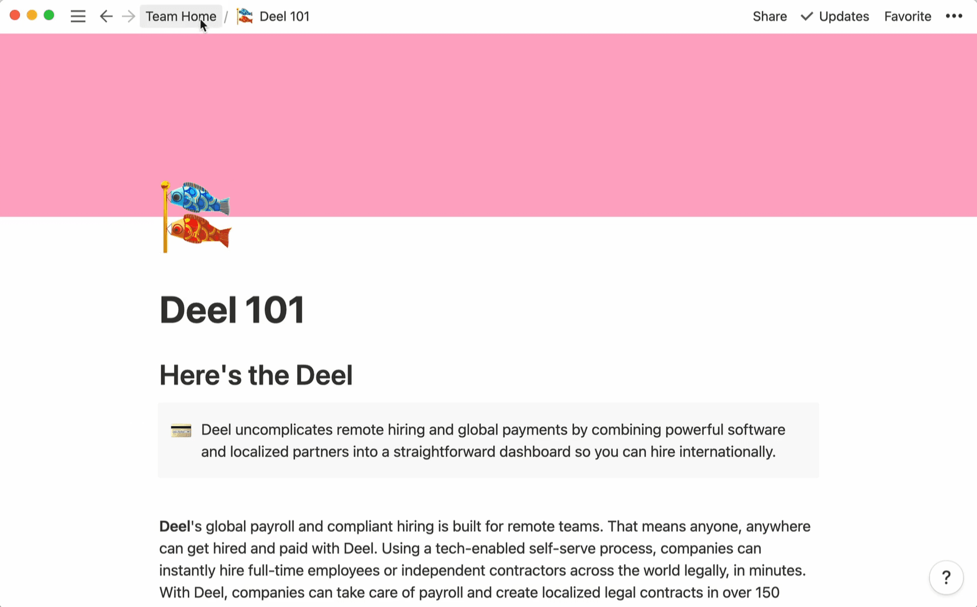 When things look clean, they’re clearer. Deel employees are contributing to Notion all the time, so information needs to be standardized.