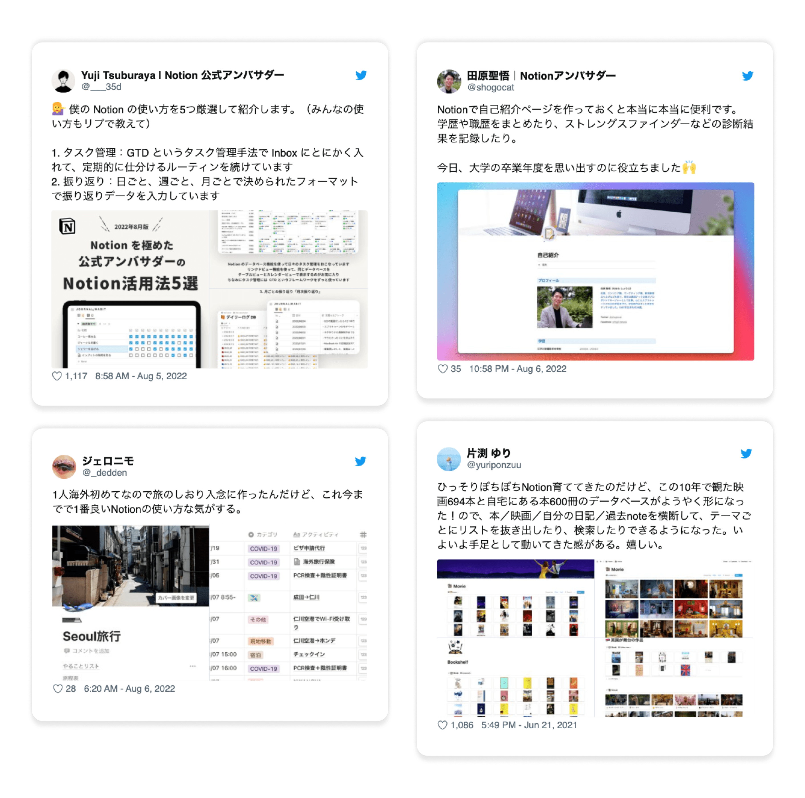 Notionのコミュニティは、私たちにとって最もクリエイティブで心温まる場所のひとつです。子育てから起業まで、人生のあらゆる場面において大切なことを実現するための、みなさんのNotionの活用方法に、私たちは毎日驚かされています。