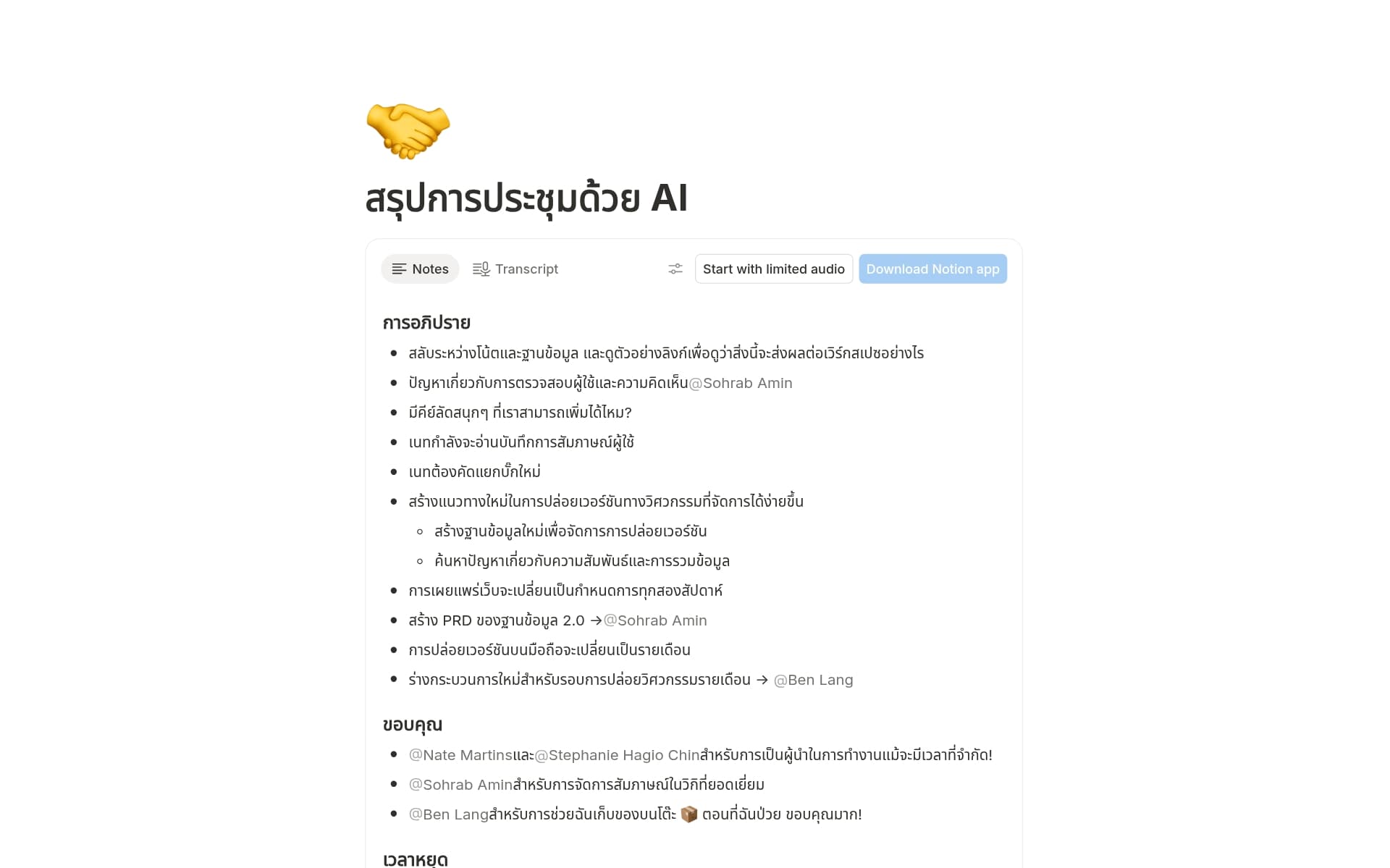 Organized meeting notes in Notion keep the whole team on track